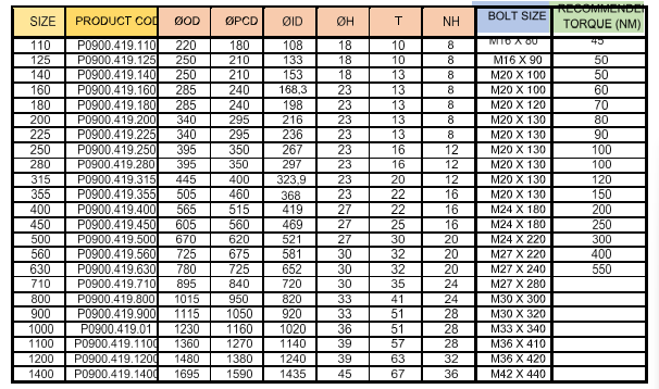 110 - 1000 MM BACKING RING GALV